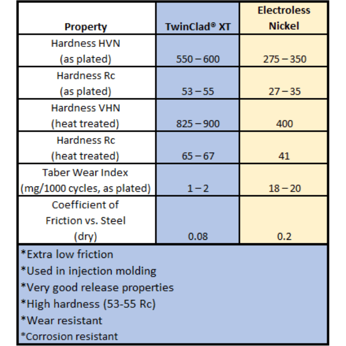 Die Micro Swiss Düse ist eine hochwertige RepRap-Düse, die aus einem 360 Messing-Basismaterial gefertigt und mit einer TwinClad XT-Beschichtung versehen ist. Diese spezielle Nickelverbundbeschichtung wurde entwickelt, um sehr niedrige Reibung zu gewährleisten. Sie bietet einen der niedrigsten Reibungskoeffizienten und übertrifft damit sogar Nickel mit PTFE-Co-Deposit. Darüber hinaus ist diese Beschichtung äußerst hart und abriebfest. Wenn Sie mit abrasiven Materialien wie Carbonfaser, Edelstahl, Holzfüllungen oder anderen metallgefüllten Filamenten arbeiten, wird dies die Lebensdauer Ihrer Düse erheblich verlängern.