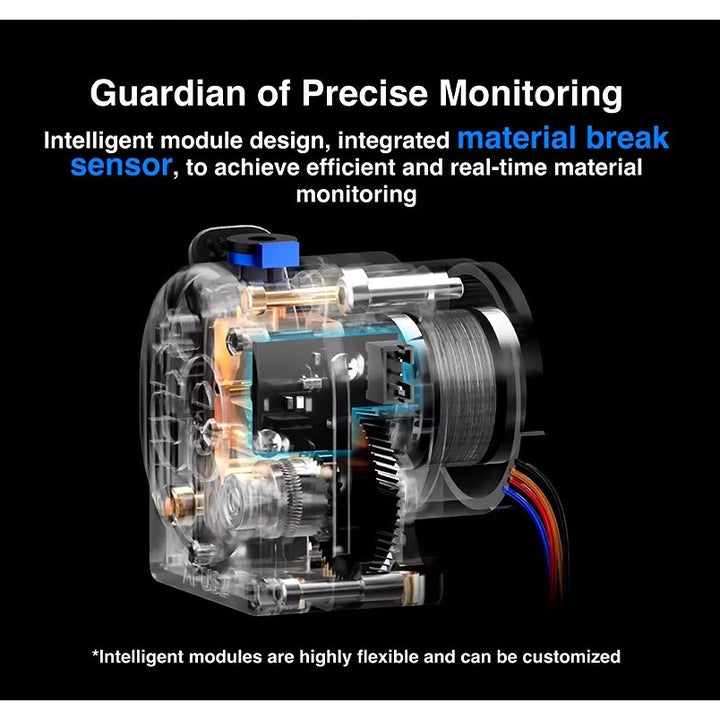 Der APUS 2 ist mit einem integrierten Materialbruchsensor ausgestattet und bietet ein intelligentes modulares Design, das eine präzise Echtzeitüberwachung des Materialstatus ermöglicht. Diese Funktion sorgt für ein reibungsloses Materialfeeding und verbessert die gesamte Druckgenauigkeit.