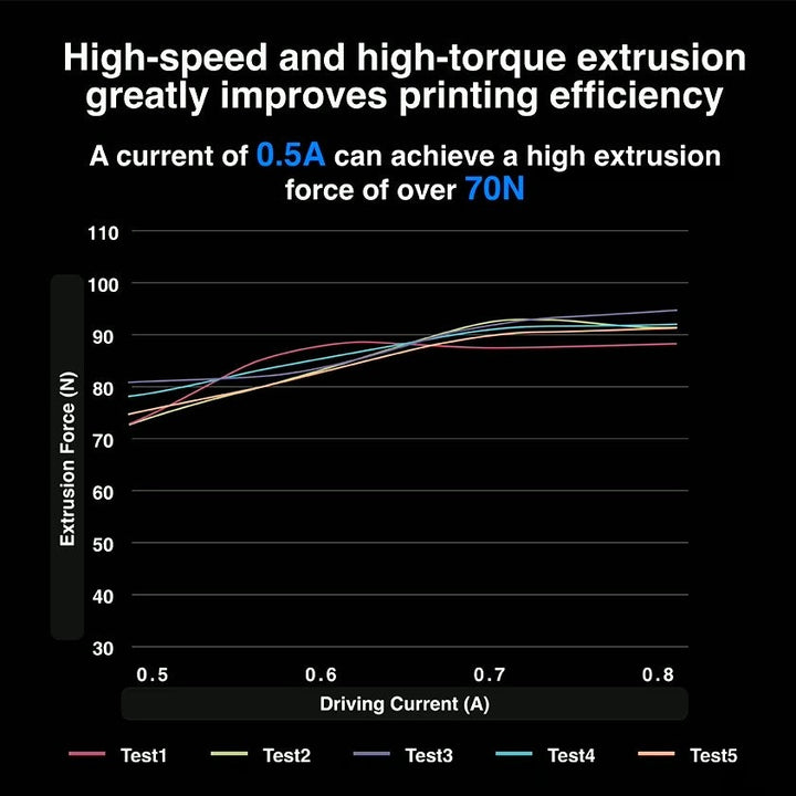 Mit einem beeindruckenden Übersetzungsverhältnis von 5,8:1 liefert der Extruder ein hohes Drehmoment, selbst im Niedrigstrommodus. Dies gewährleistet eine kraftvolle Extrusion und minimiert Materialverstopfungen durch eine effiziente Wärmeableitung.