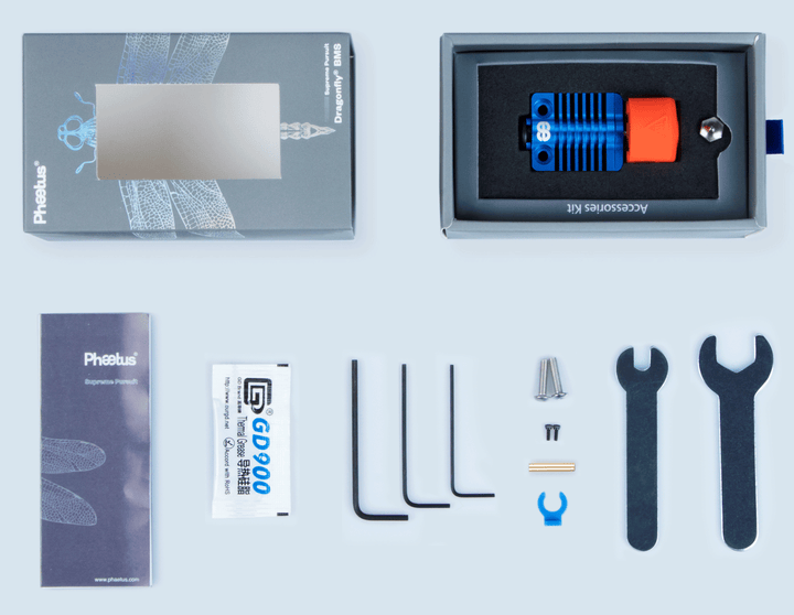 Im Lieferumfang des Phaetus Dragonfly Hot-End BMS sind folgende Zubehörteile enthalten: