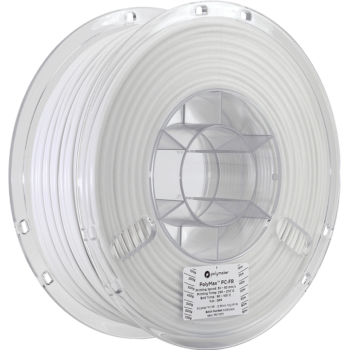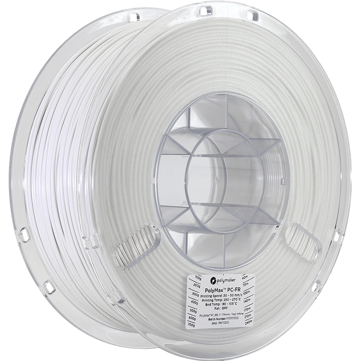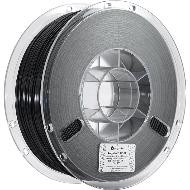 PolyMax™ PC-FR, hergestellt aus der Makrolon®-Familie von Covestro, erreicht die V0-Leistung im UL94-Flammwidrigkeitstest und zeigt hervorragende Zähigkeit, Festigkeit und Hitzebeständigkeit. Dieses Filament eröffnet neue Anwendungen in den Bereichen Automobil, Eisenbahn und Luftfahrt.