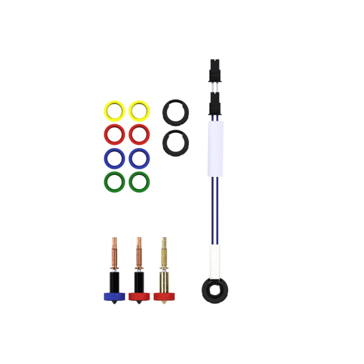 E3D Revo™ High Flow X Hotside Kit – die ultimative Kombination aus Hochfluss-Technologie und Abriebfestigkeit. Mit den ObXidian-Düsen profitieren Sie von erhöhter Durchflussrate und extremer Verschleißfestigkeit, ideal für abrasive Filamente wie Glas- oder Carbonfaser-verstärkte Kunststoffe.