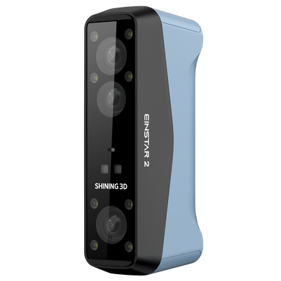 De EINSTAR 2 is een compacte, draadloze 3D-scanner voor studio- en buitengebruik. Met slechts 420 g gewicht, een hybride lichtsysteem van 17 blauwe laserlijnen en IR-VCSEL-technologie, en tot drie uur batterijduur, levert hij professionele scanresultaten in vrijwel elke omgeving.